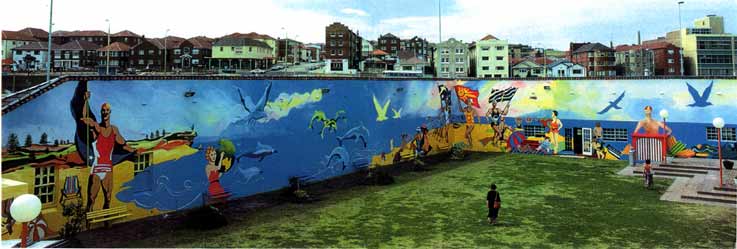 'Bondi the Beautiful' community mural in the northern courtyard of Bondi Pavilion 1980 Size; 625 sq meters